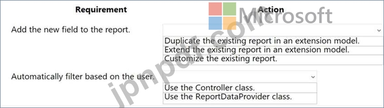 企業は、Microsoft SQL Server Reporting Services (SSRS) の基本レポートの 1 つを変更する必要があります。レポートには、レポートを開いたユーザーに基づいてレポートを自動的にフィルタリングする新しいフィールドが含まれている必要があります。