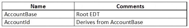 あなたは Dynamics 365 Finance 開発者です。次の拡張データ型 (EDT) があります。