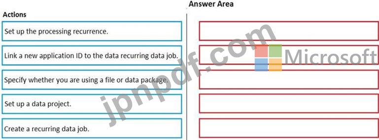 どの順序でアクションを実行する必要がありますか? 回答するには、すべてのアクションをアクションのリストから回答領域に移動し、正しい順序で並べます。