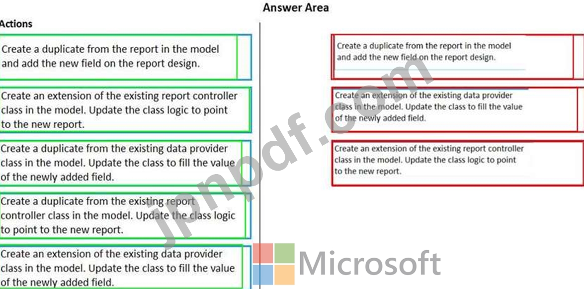 どの 3 つのアクションを順番に実行する必要がありますか? 回答するには、アクションのリストから適切なアクションを回答領域に移動し、正しい順序で並べます。