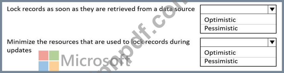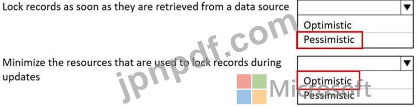 どの同時実行制御オプションを実装する必要がありますか? 回答するには、回答領域で適切なオプションを選択してください。