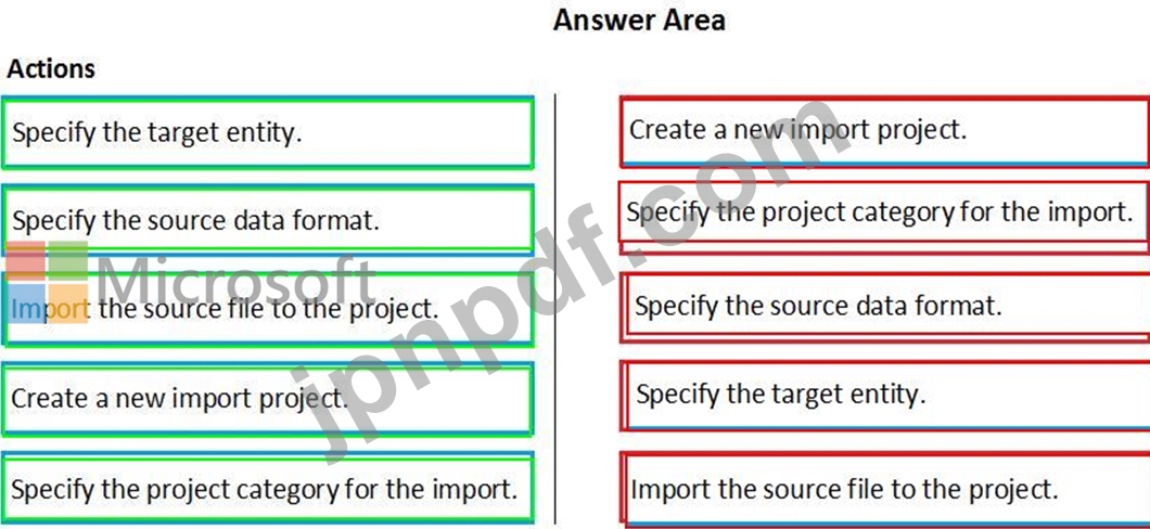 どの順序でアクションを実行する必要がありますか? 回答するには、アクションのリストから適切なアクションを回答領域に移動し、正しい順序で並べます。