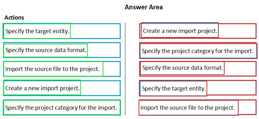 どの順序でアクションを実行する必要がありますか? 回答するには、アクションのリストから適切なアクションを回答領域に移動し、正しい順序で並べます。