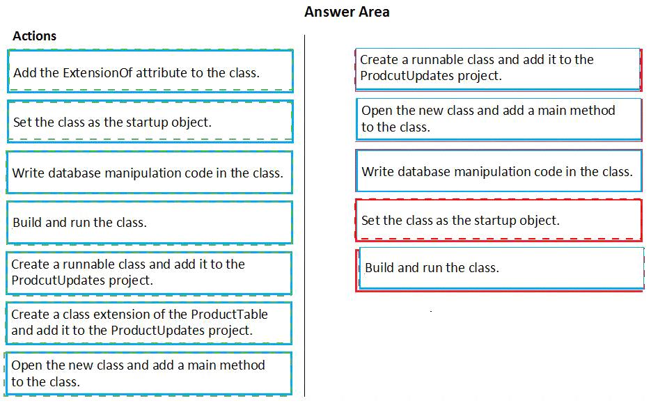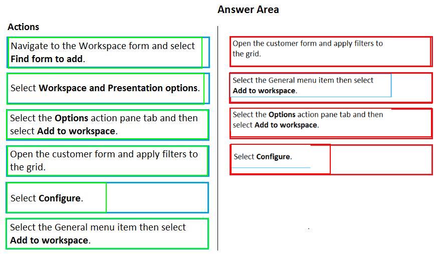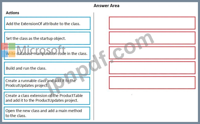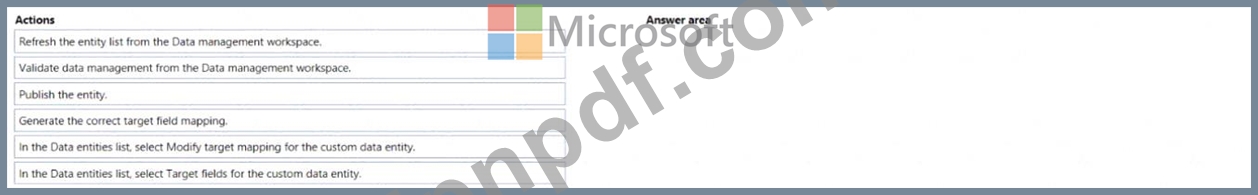 順番に実行する必要がある 5 つのアクションはどれですか。回答するには、アクション リストから適切なアクションを回答領域に移動し、正しい順序に並べます。