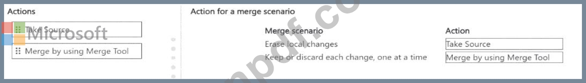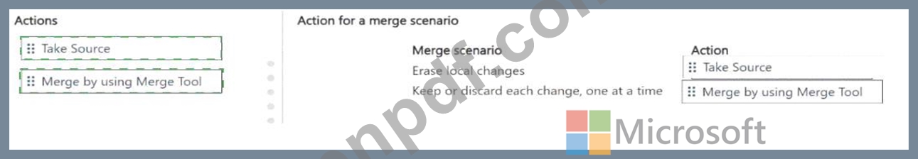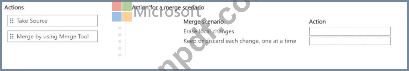 どのようなアクションを実行する必要がありますか? 回答するには、適切なアクションを正しいマージ シナリオに移動します。