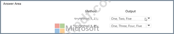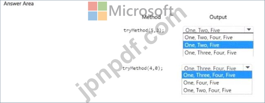 このメソッドの正しい出力は何ですか? 回答するには、回答領域で適切なオプションを選択してください。