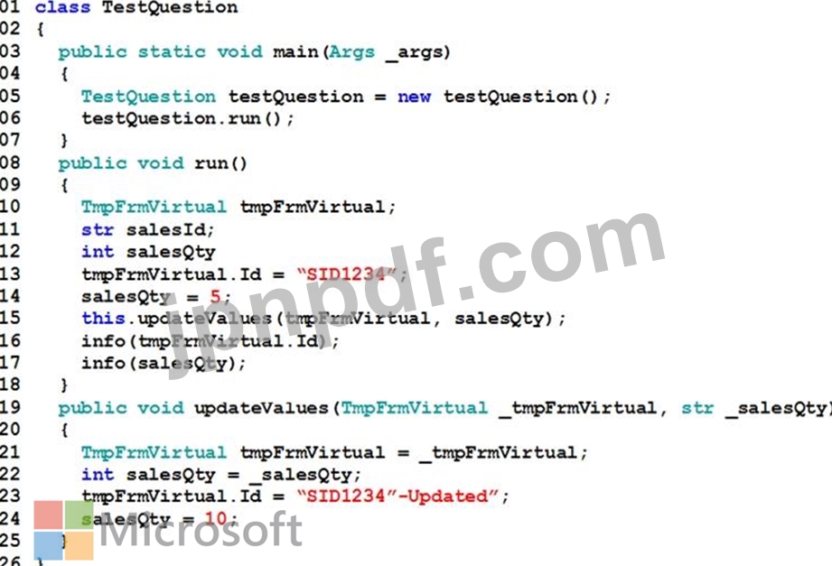 Dynamics 365 Finance and Operations の開発者の方です。以下のコードをお持ちです。(行番号は参考のためにのみ作成されています。)