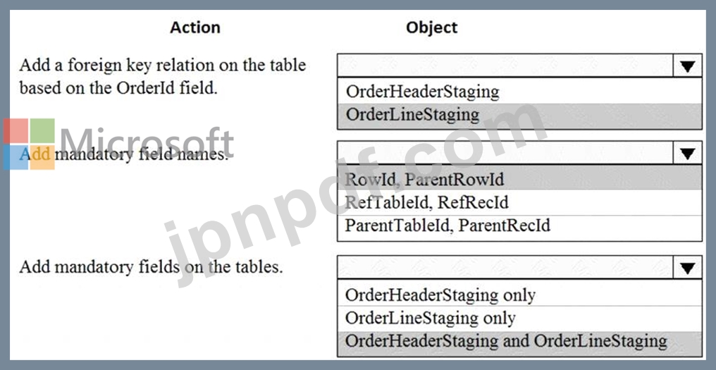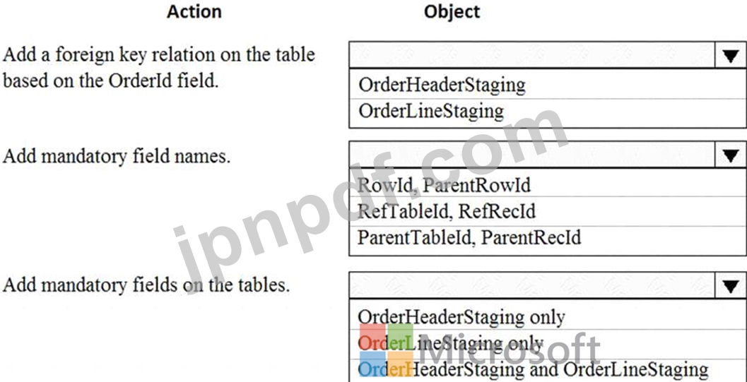 各アクションにはどのオブジェクトを使用する必要がありますか? 回答するには、回答領域で適切なオプションを選択してください。