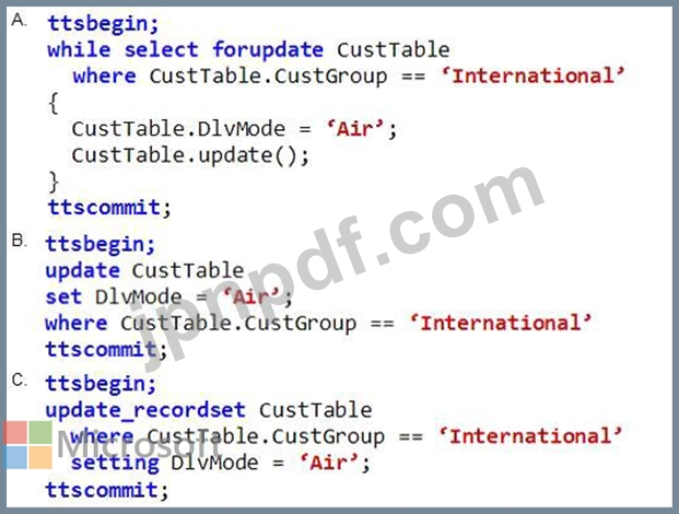 顧客レコードが更新されるたびに検証を行う必要があります。顧客グループフィールドの値が「国際」であるすべての顧客については、配送方法を「航空便」に設定する必要があります。