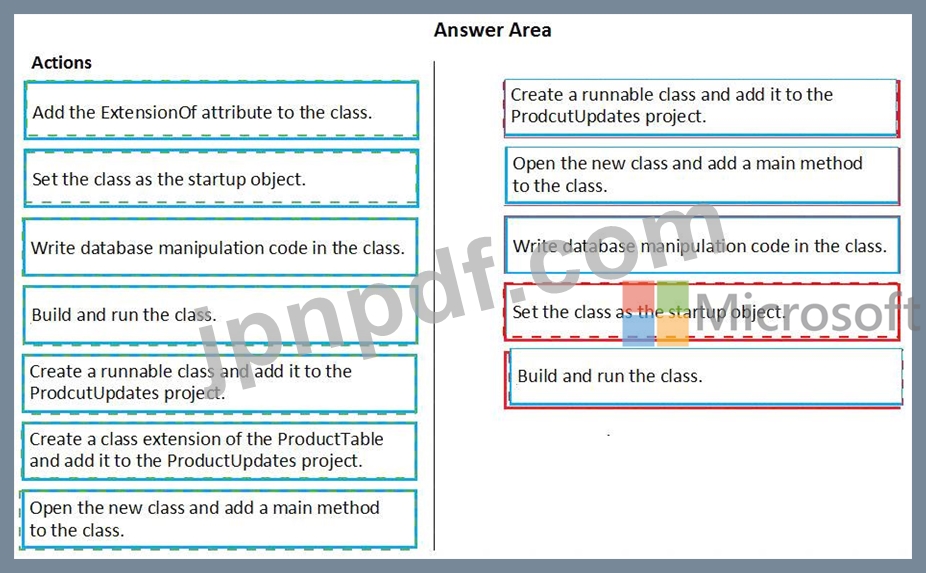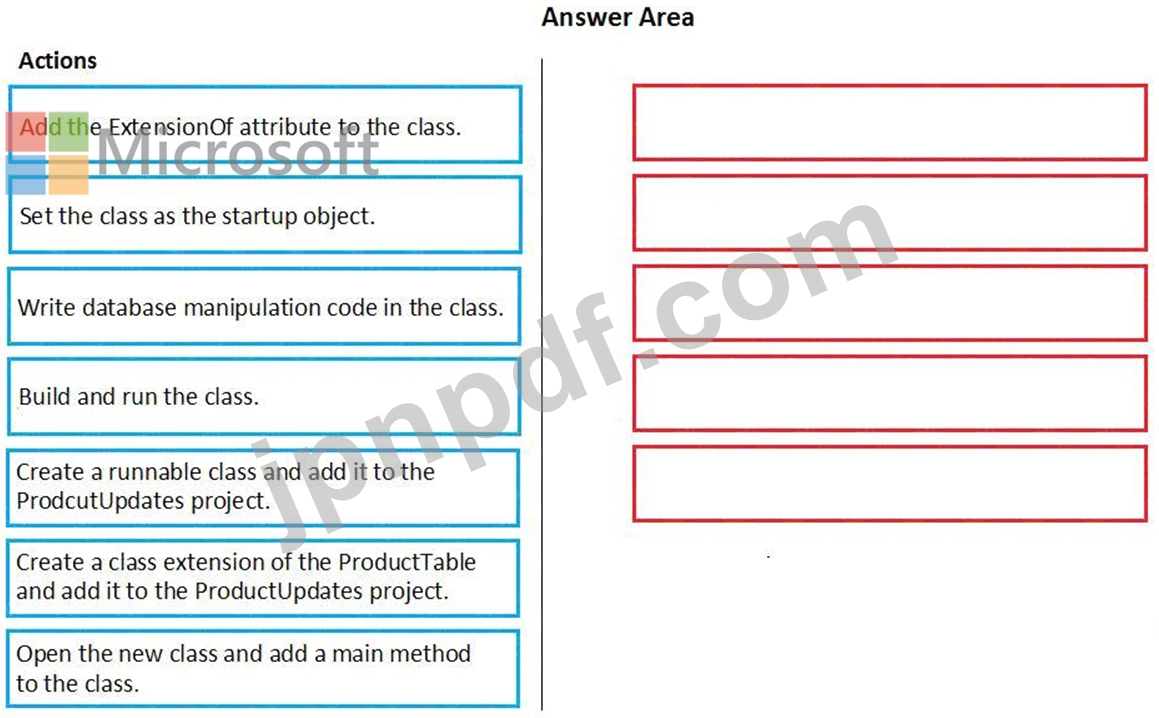 順番に実行する必要がある 5 つのアクションはどれですか。回答するには、アクション リストから適切なアクションを回答領域に移動し、正しい順序に並べます。