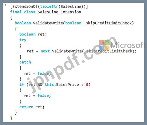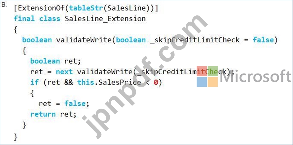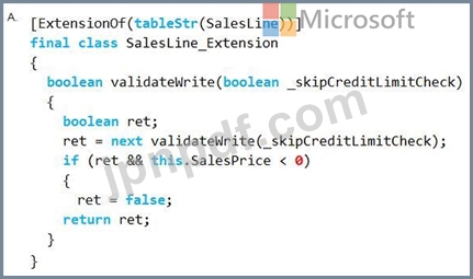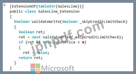 SalesLineテーブルのvalidateメソッドをChain of Commandを使用して拡張する必要があります。新しい行を追加する際、SalesPriceという変数の値は0以上である必要があります。