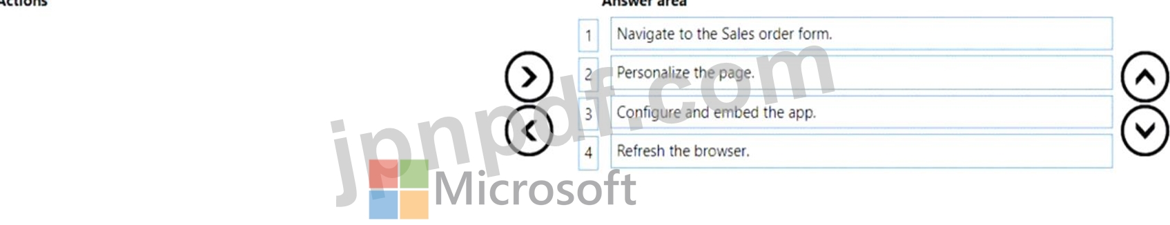 順番に実行する必要がある 3 つのアクションはどれですか。回答するには、適切なアクションをアクション リストから回答領域に移動し、正しい順序に並べます。