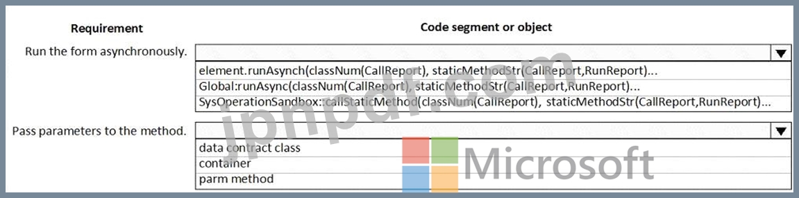 どのコードセグメントを使用する必要がありますか? 回答するには、回答領域で適切なオプションを選択してください。