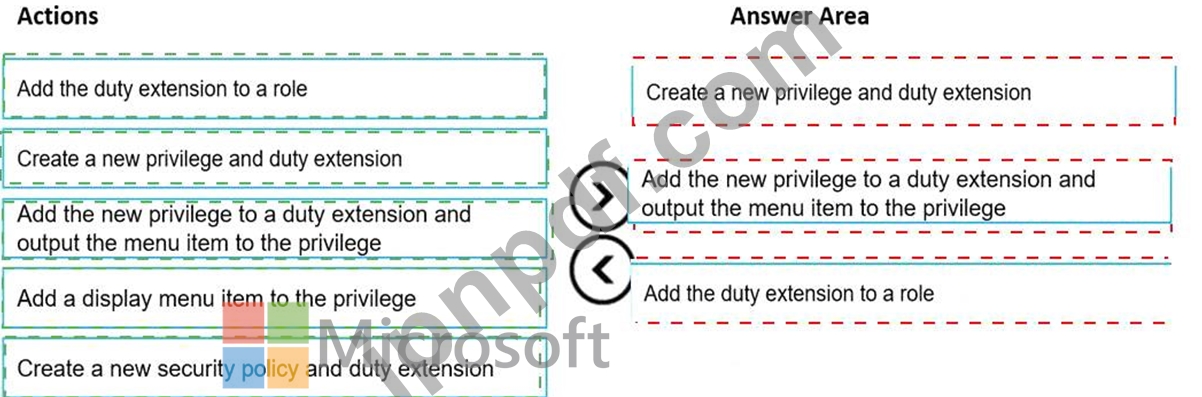 順番に実行する必要がある 3 つのアクションはどれですか。回答するには、適切なアクションをアクション リストから回答領域に移動し、正しい順序に並べます。