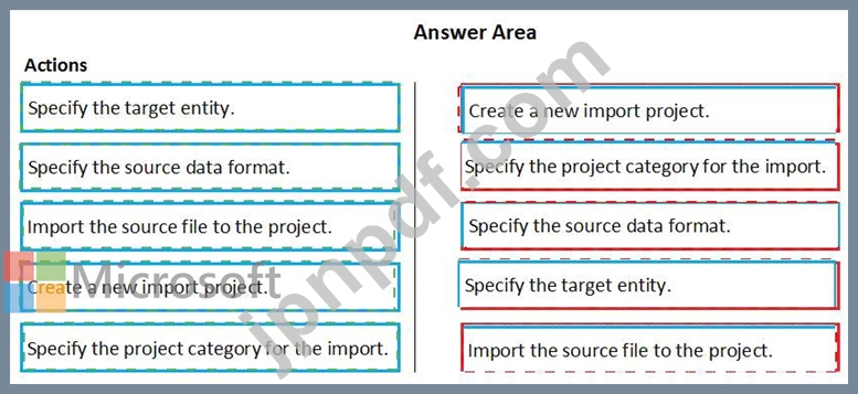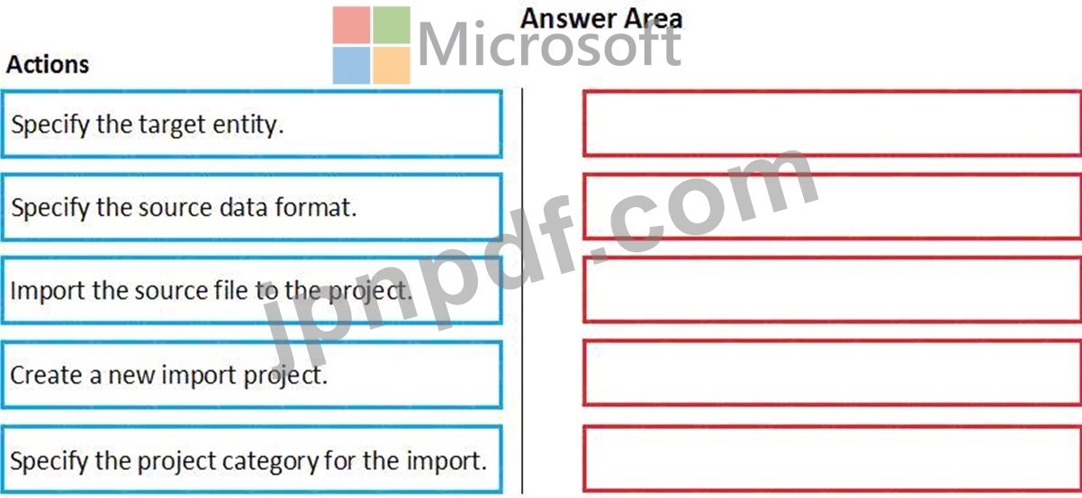 どの順序でアクションを実行すればよいですか? 回答するには、アクションのリストから適切なアクションを回答領域に移動し、正しい順序に並べます。