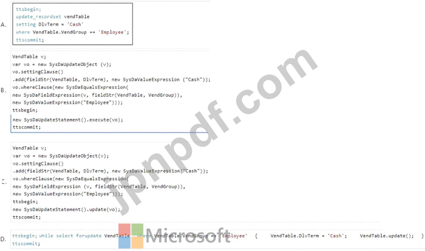 ある組織には、Employeeというベンダーグループに属する1,000社のベンダーが存在します。ベンダーの納品条件を記述するために、DIvTermというフィールドがあります。