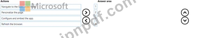 どの順序でアクションを実行すればよいですか? 回答するには、すべてのアクションをアクション リストから回答領域に移動し、正しい順序に並べます。