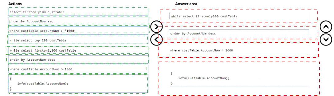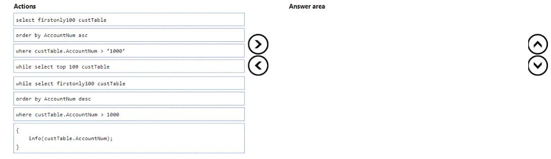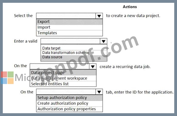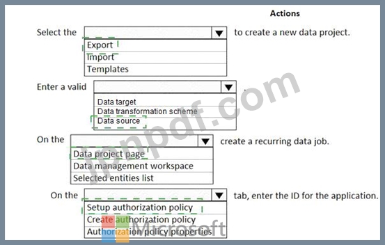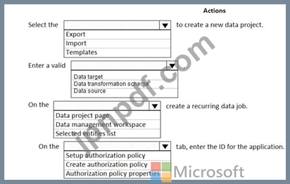 順番に実行する必要がある 5 つのアクションはどれですか。回答するには、アクション リストから適切なアクションを回答領域に移動し、正しい順序に並べます。