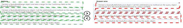 どの順序でアクションを実行すればよいですか? 回答するには、すべてのアクションをアクション リストから回答領域に移動し、正しい順序に並べます。