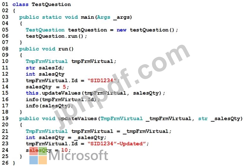 Dynamics 365 Finance and Operations の開発者の方です。以下のコードをお持ちです。(行番号は参考のためにのみ作成されています。)