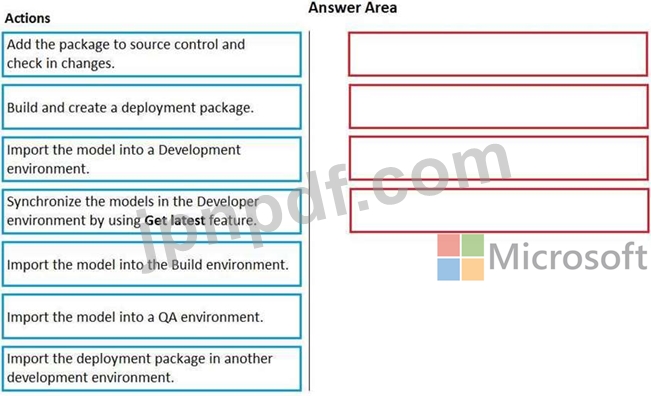 どの 4 つのアクションを順番に実行する必要がありますか? 回答するには、適切なアクションをアクション リストから回答領域に移動し、正しい順序に並べます。