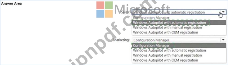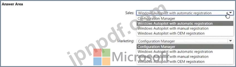 * マーケティング部門のデバイスは AD DS ドメインにのみ参加する必要があります。IT 部門は、マーケティング部門のユーザーにデバイスを渡す前に、構築時に複雑なアプリケーションをデバイスにインストールします。