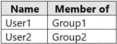 次の表に示すユーザーを含む Azure Active Directory (Azure AD) テナントがあります。