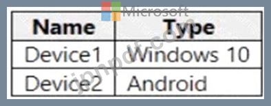 次の表に示すように、Microsoft Intune にデバイスが登録されています。