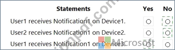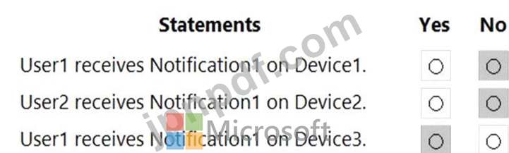 Intune から、Notification1 という名前のカスタム通知を作成し、Group1 に送信します。