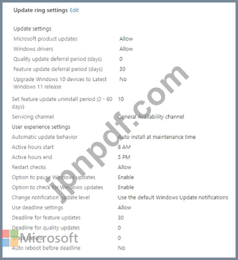 次の図に示すように、Policy1 という名前の新しい更新リング ポリシーを作成します。