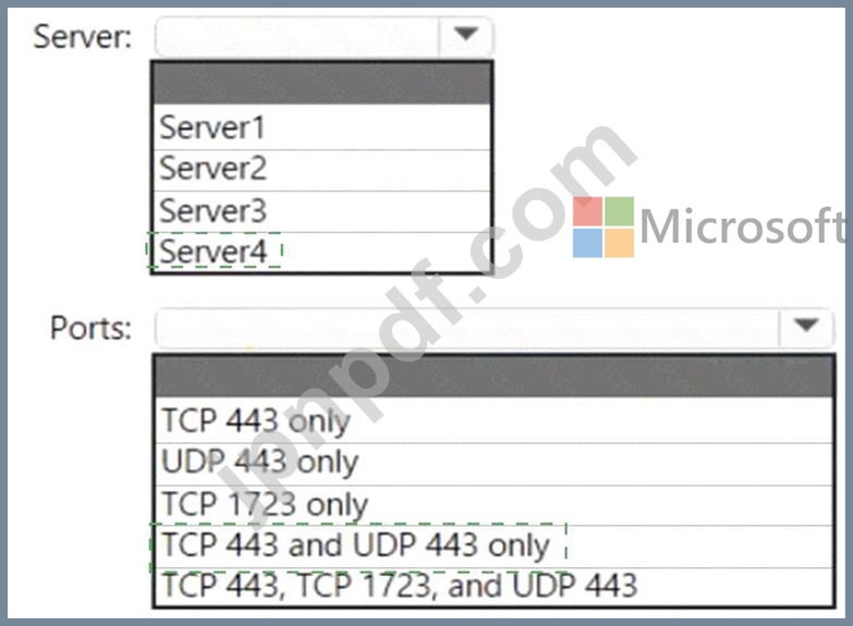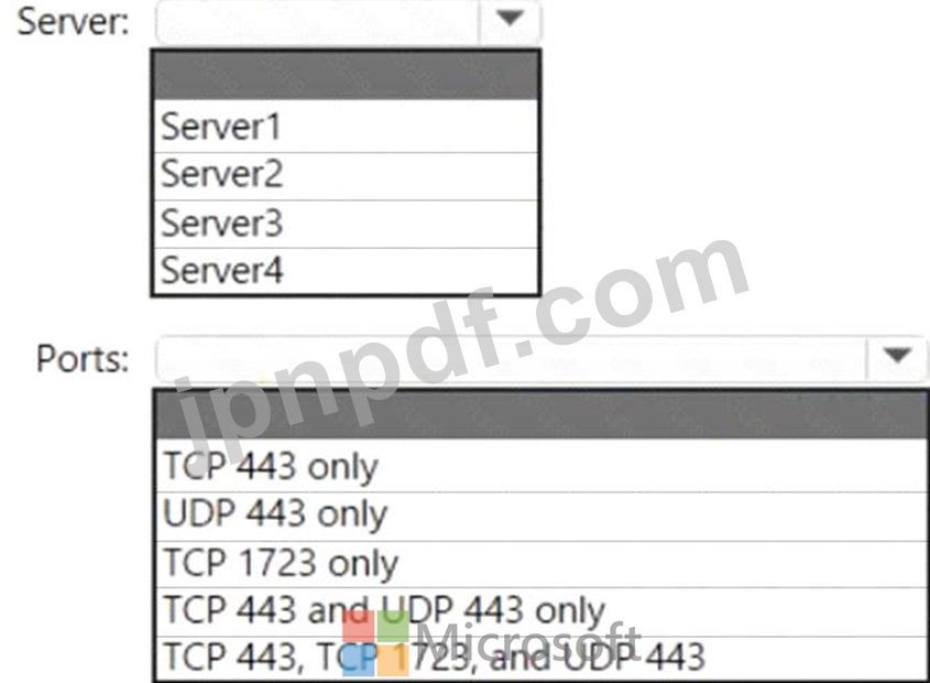 どのサーバーにトンネル ゲートウェイ サーバーを展開できますか?また、Microsoft トンネル接続をサポートするにはサーバー上でどの受信ポートを許可する必要がありますか? 回答するには、回答領域で適切なオプションを選択してください。