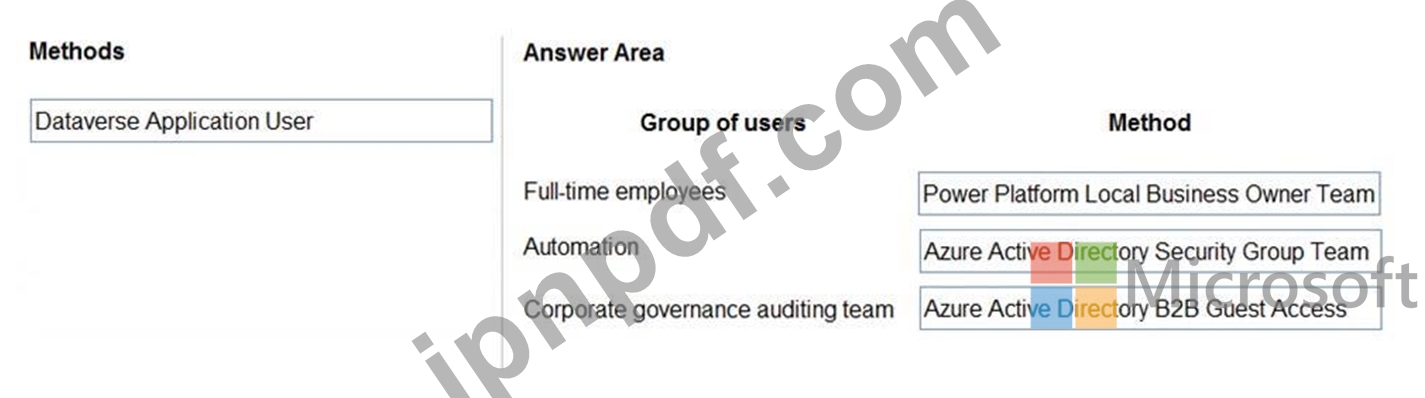 会社には、レポート作成用の標準ツールがありません。組織は、新しい Power Platform ソリューションの実装をあなたに依頼します。従業員は、1 人の主要な採用担当者と契約アシスタントを含む専任チームによって管理されます。多くのクライアント企業は、モバイル データ接続が許可されていない地域に住んでいます。