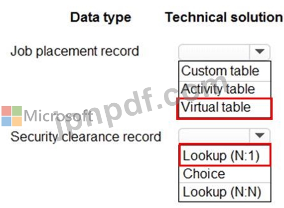 この情報を保存するには、どの 2 つの Microsoft Dataverse 列タイプを使用する必要がありますか?