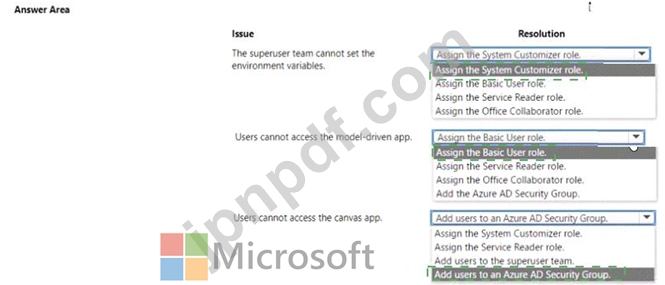 顧客と協力して、運用環境への Go Live 展開を計画しています。ソリューションには、いくつかのアプリと環境変数が含まれています。スーパーユーザー チームは、特定の環境の Azure AD セキュリティ グループを使用してセキュリティ保護された運用環境を管理します。