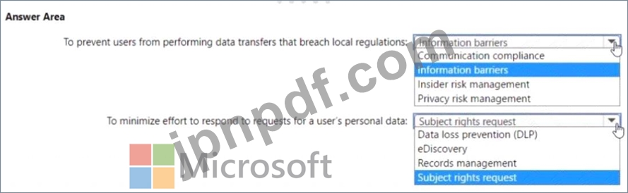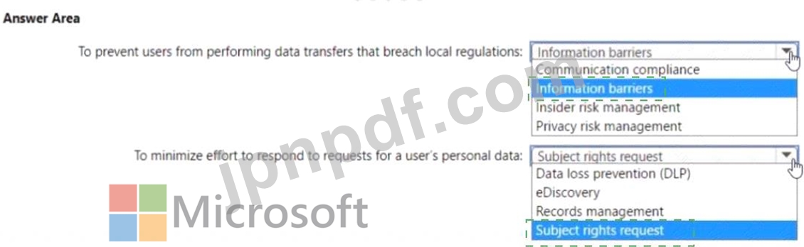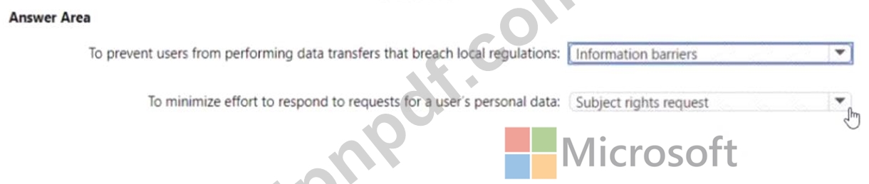 Microsoft Purview コンプライアンス ポータルでは何を使用すればよいですか? 回答するには、回答領域で適切なオプションを選択してください。