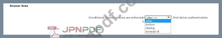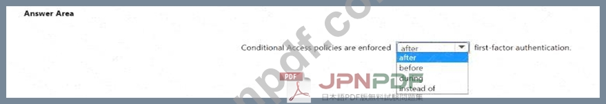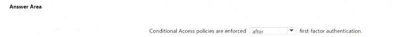This design ensures Conditional Access does not replace primary authentication and is not enforced before or during the initial credential verification. Instead, it adds a second policy decision point that can demand stronger proof (e.g., MFA), restrict access paths, or limit sessions. Therefore, "after" is correct, while