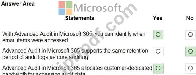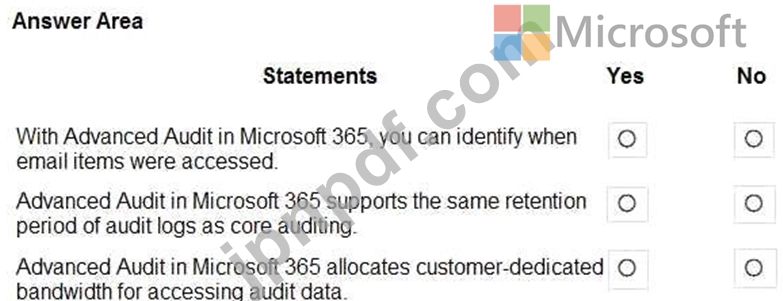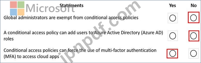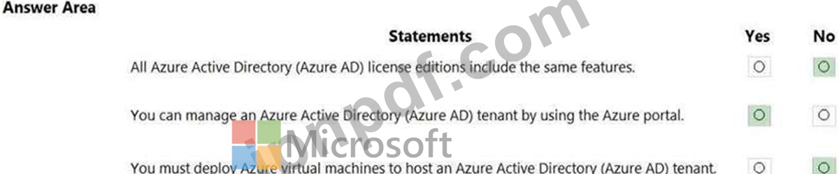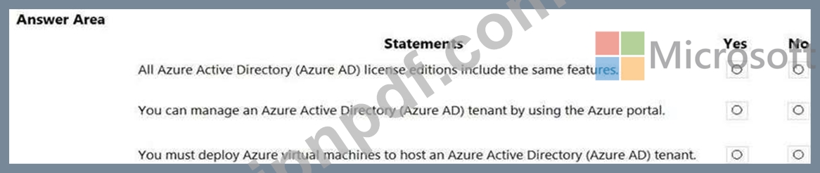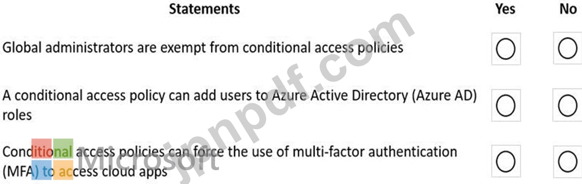 次の各ステートメントについて、ステートメントがtrueの場合は、[はい]を選択します。それ以外の場合は、[いいえ]を選択します。