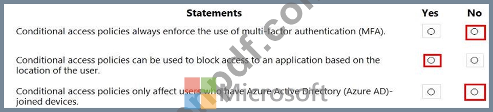 次の各ステートメントについて、ステートメントがtrueの場合は、[はい]を選択します。それ以外の場合は、[いいえ]を選択します。