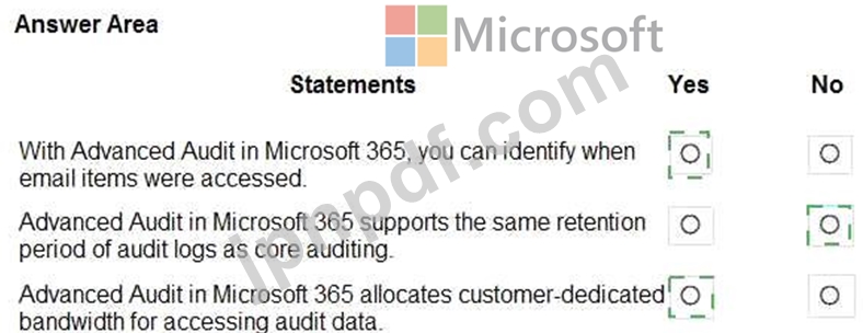 次の各ステートメントについて、ステートメントがtrueの場合は、[はい]を選択します。それ以外の場合は、[いいえ]を選択します。