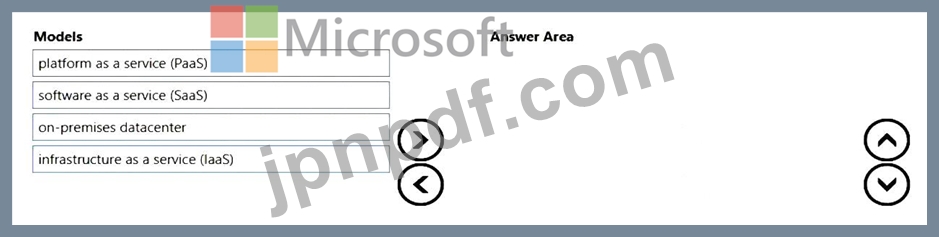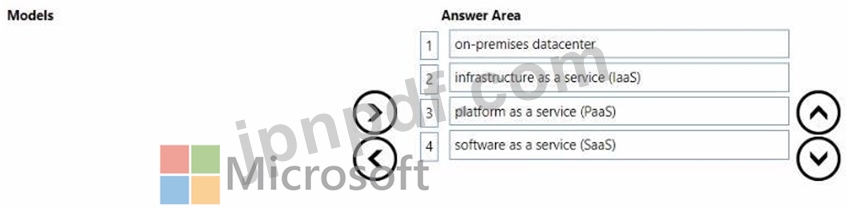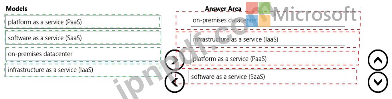 顧客責任が最も大きい(上)から最も小さい(下)まで、サービス モデルをどのような順序でリストする必要がありますか。回答するには、すべてのモデルをモデル リストから回答領域に移動し、正しい順序に並べます。
