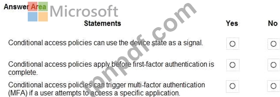 回答するには、左側の列から適切な条件付きアクセス信号の種類を右側の定義にドラッグしてください。各信号の種類は、1回、複数回、またはまったく使用されない場合があります。