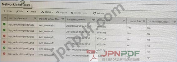 展示を参照すると、LUNに接続しているホストでパス障害が発生するFC LIFはどれですか?