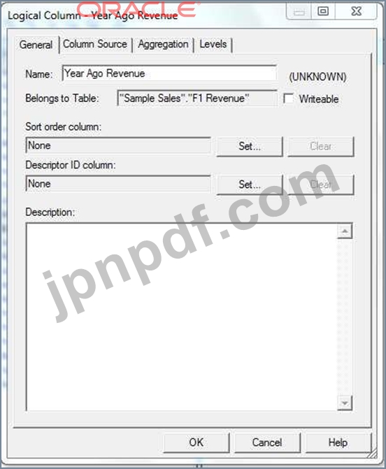 2. 「論理列」ウィンドウで、以下のように「名前: Year Ago Revenue」と入力します。