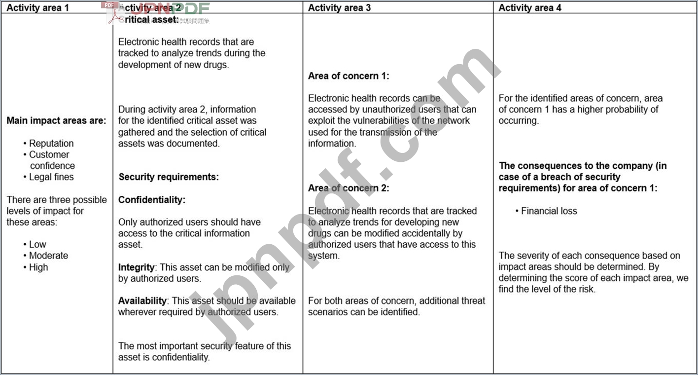 3. Activity area 3: The organization identifies the areas of concern which initiates the risk identification process. In addition, the organization analyzes and determines the probability of the occurrence of possible threat scenarios.
