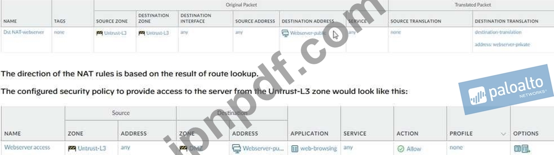 ファイアウォールで設定する必要がある NAT およびセキュリティ ルールはどれですか? (2 つ選択してください)