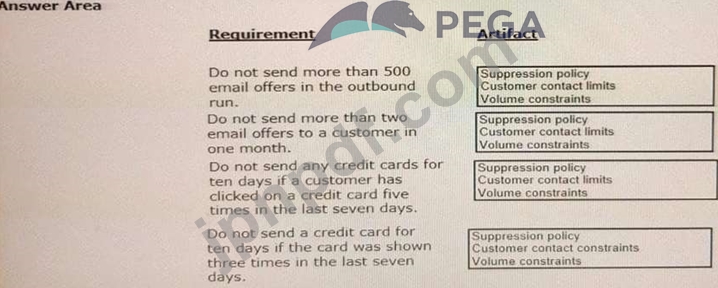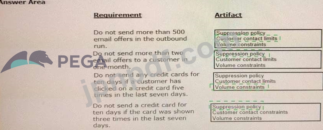 回答領域で、各要件の実装に使用する正しいアーティファクトを選択します。