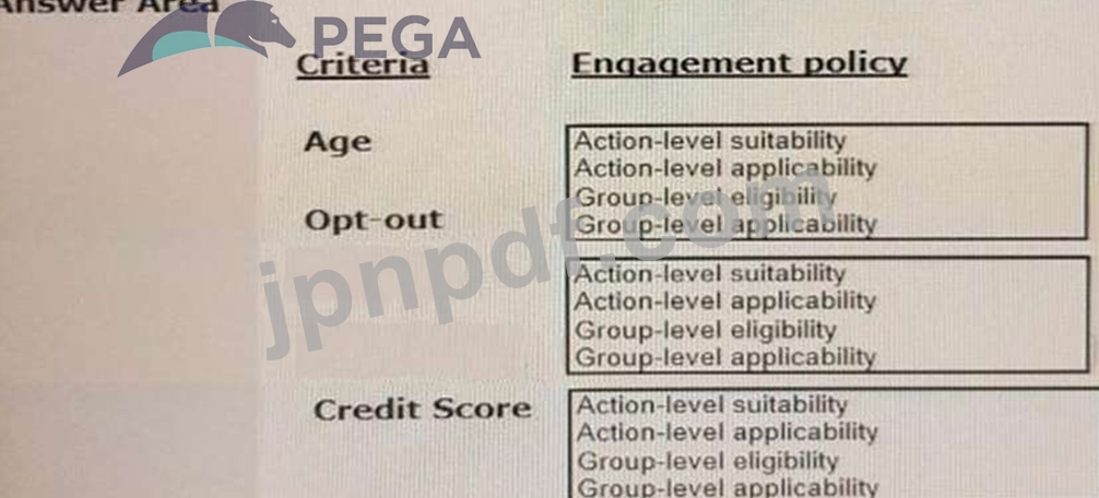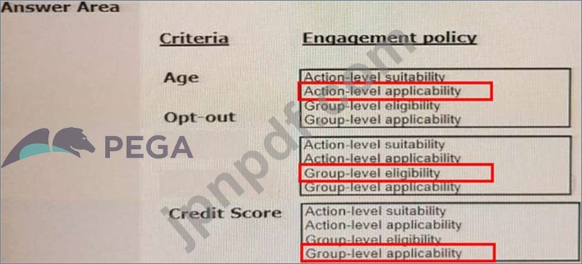 意思決定コンサルタントとして、この要件をどのように実装しますか? 回答領域で、各基準に対して正しいエンゲージメント ポリシーを選択します。
