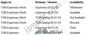 Apply to:クラスのTGB-Expenses-Work-Reimbursementを持つルールは、PopulateLineltemsという名前のルールを参照します。ルールキャッシュ内の6つのインスタンスを次の表に示します。
