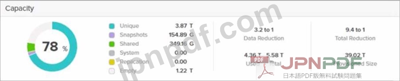 この FlashArray システムで消費される使用可能なストレージ容量の合計はどれくらいですか?