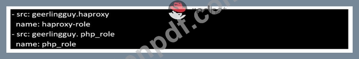 /home/sandy/ansible/roles にrequirements.ymlというファイルを作成して、2つのロールをインストールします。最初のロールのソースは、geerlingguy.haproxy と geerlingguy.php です。最初の haproxy-role と 2 番目の php-role に名前を付けます。ロールは /home/sandy/ansible/roles にインストールする必要があります。